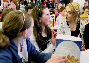 There was no shortage of questions for the actor, who will sit her Leaving Certificate and intends to emigrate to London during the summer to pursue an acting career. Each response elicited another forest of hands from a knowledgable audience. What is her favourite Harry Potter book/film/scene/character? What was it like to see Dumbledore die? What was it like to act alongside computer generated characters such as the Dooby, the house-elf, or Thestrals, the winged horse? Was there anybody on set she did not like? “No,” she replied.