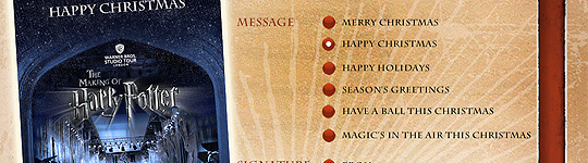 Happy Holidays from Warner Bros. Studio Tour London – The Making of Harry Potter. In honor of the Holiday Season Warner Bros. have created an app to let you create and share e-cards with your friends! You can make and send your cards using this link.