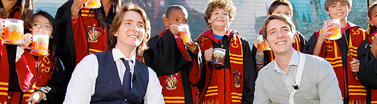 Warner Bros. and Universal have sent over some photos of James and Oliver Phelps from today’s Wizarding World of Harry Potter announcement at Universal Studios Hollywood.  You can view the 3 new photos in high resolution in the gallery.  There are also 4 new photos from the theme park in Orlando, view those here in the gallery!