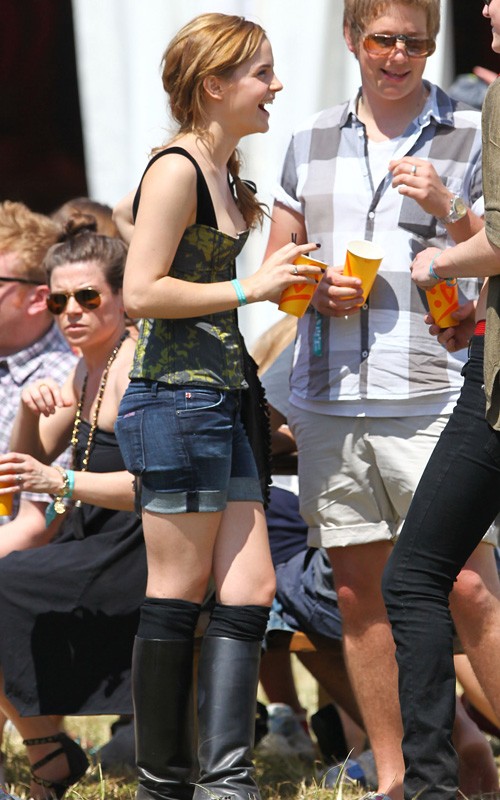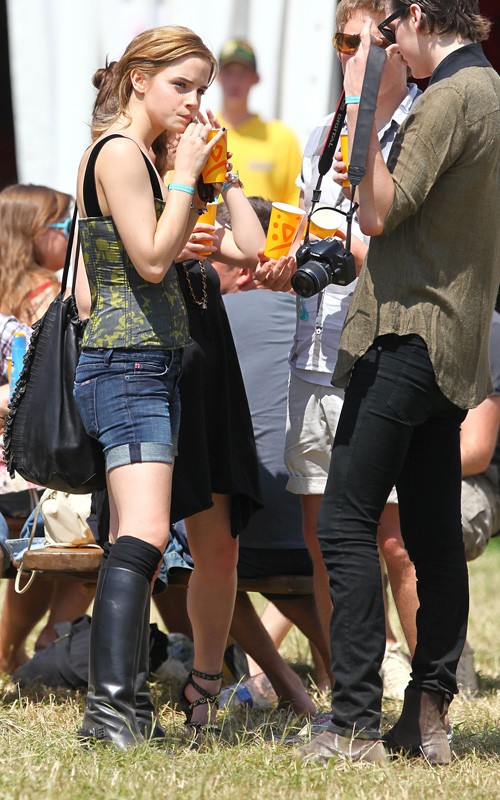 Emma Watson attended the Glastonbury Festival today with friend and fellow Burberry model George Craig. View photos below: